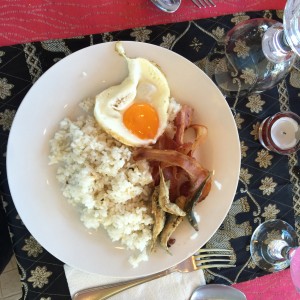 First Breakfast at the hotel. There is a buffet breakfast but there were few choices. Hubby’s plate: My plate: View from our window: The breakfast was just okay.. on our second day, the breakfast was in set-menu and it has less choices. π Not a good experience though…