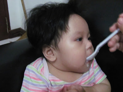 Last December, Pillow takes her first solid food. I let her tried the Cerelac Rice and Wheat. After a month, I am offering her different food and just today she tried the Cerelac Banana and she likes it.